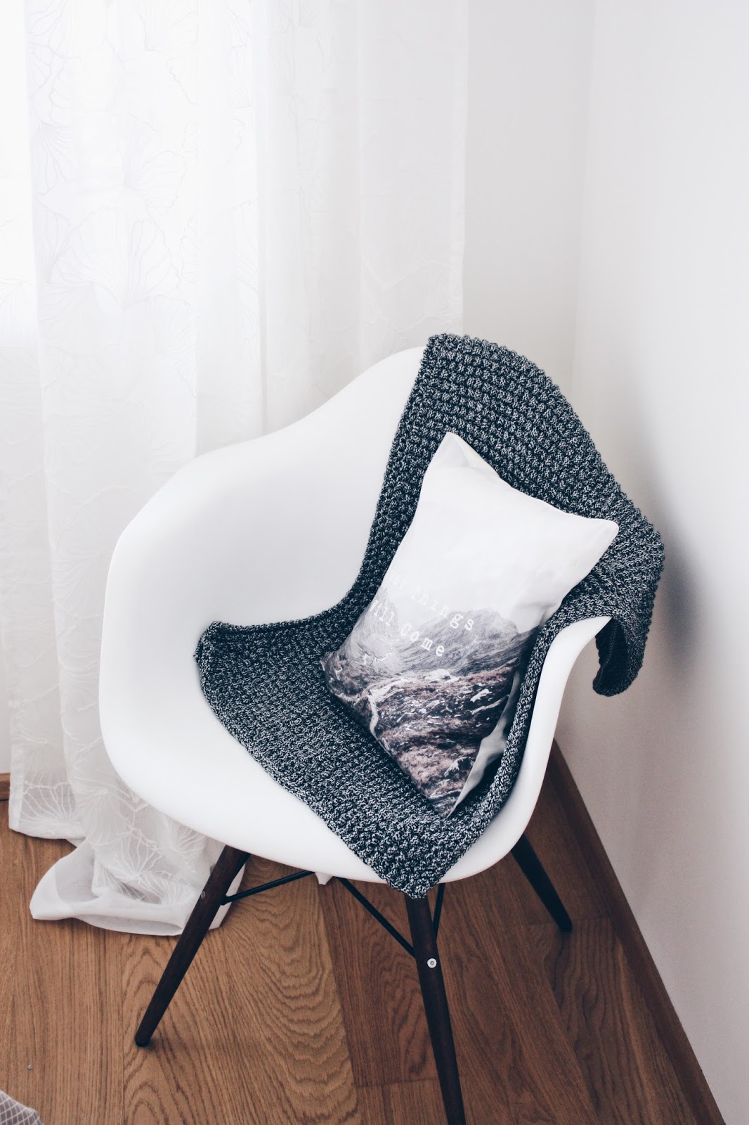 Seisma see töö jäi ning hea aasta aega oli ta kuskil kapi põhjas peidus, kuniks pärast paari kolimist taas päevavalgele tuli. Sügisel kui kool taas algas, siis võtsin selle hallikakirju töö ette ja mõtlesin, et aitab. On aeg see üles harutada ja sellest midagi praktilist teha. Tundus loogiline, et sellest võiks saada väikse teki. Nii ma siis alustasin teki kudumist ja tegin seda mitme kuu vältel nii, kuidas juhtus. Sõpradele ütlesin, et see on mu pärast-tööd-närvide-rahustamise-kudumine. Kõlab, nagu ma oleksin mingi närvihaige pedagoog.. Aga kui aus olla, siis 2017 sügis oli omaette karussell. Kolisin ju augustis tagasi oma valgesse korterisse ning samal ajal oli tihe kolimisprotsess käsil ka tööl (koolis). Mul oli vaja sisustada oma uued klassiruumid ning kahjuks võtab mul kohanemine päris kaua aega. Õnneks on kudumine alati minu jaoks see parim viis, kuidas pärast tööd lõõgastuda ja töömõtteid peast välja saada. Kes kudumisega tegeleb, see mõistab - "I knit, so I don't kill people."